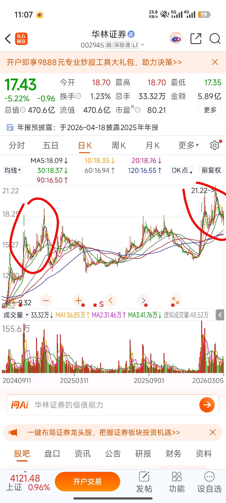 $华林证券(SZ002945)$ 你以为他前两天抗跌强势,其实是跌到前期低点附近了做个震荡,几天都没突破过28日线就说明弱势了,他不跟大盘板块的,走自己的,今天正式破位下跌,宣告双头确立,和之前双头一样的节奏。后面就是持续下跌寻底做个反弹了