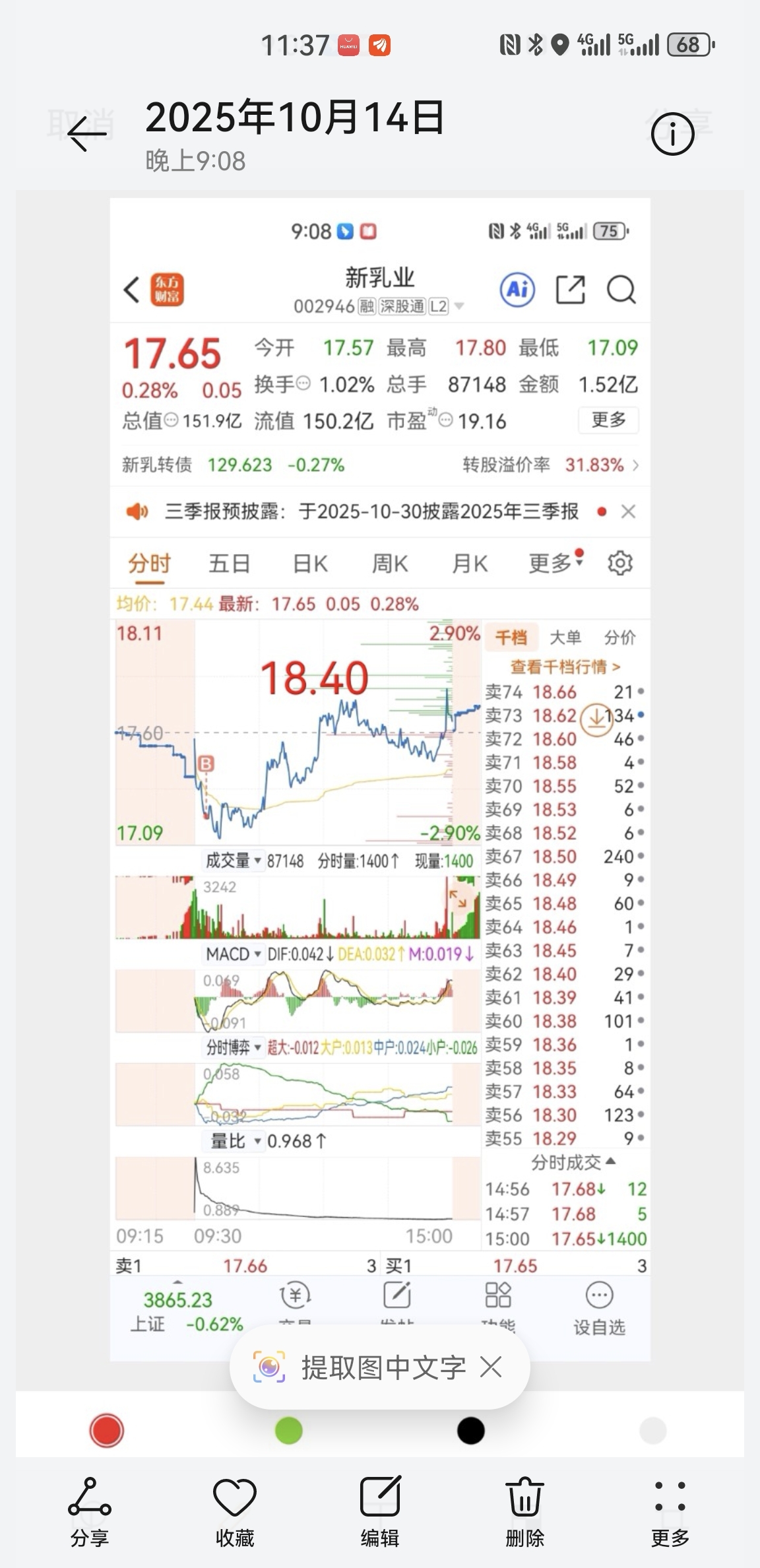 $新乳业(SZ002946)$ 昨晚计算的高点 大概也就到这了
