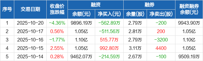 新乳业:融资净偿还562.89万元,融资余额9896.19万元(10-20)