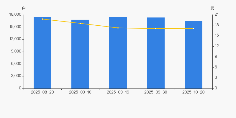 2025年8月29日至今,公司股东户数有所下降,区间跌幅为5.13%。2025年8月29日至2025年10月20日区间股价下降13.51%。