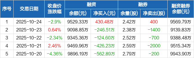 新乳业:融资净买入430.48万元,融资余额9529.33万元(10-24)