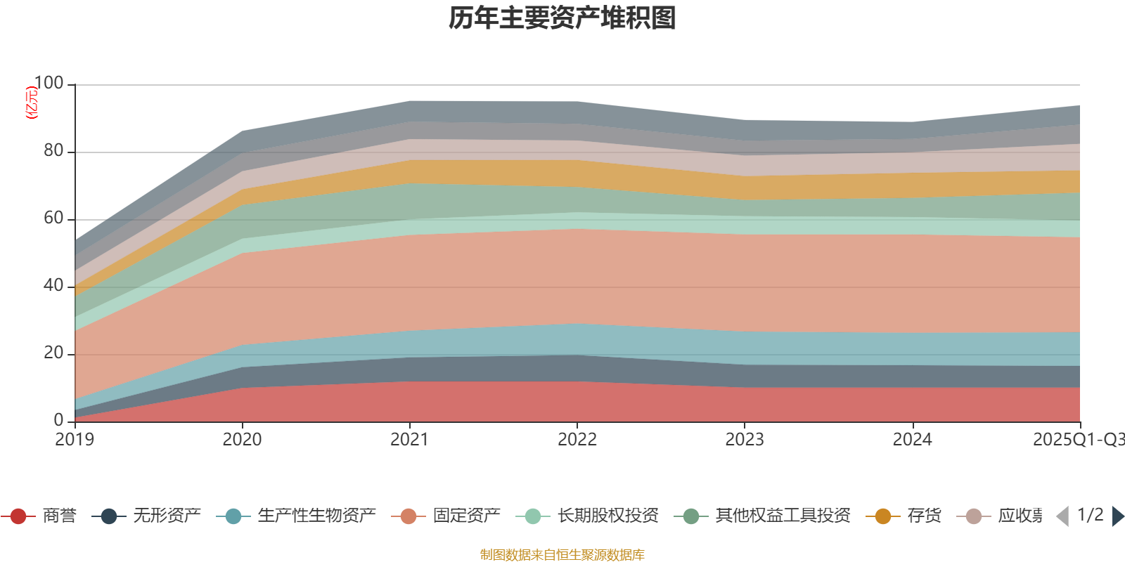 资产重大变化方面,截至2025年三季度末,公司固定资产较上年末减少3.24%,占公司总资产比重下降2.75个百分点;其他权益工具投资较上年末增加44%,占公司总资产比重上升2.34个百分点;货币资金较上年末增加45.22%,占公司总资产比重上升1.67个百分点;应收票据及应收账款较上年末增加28.73%,占公司总资产比重上升1.5个百分点。