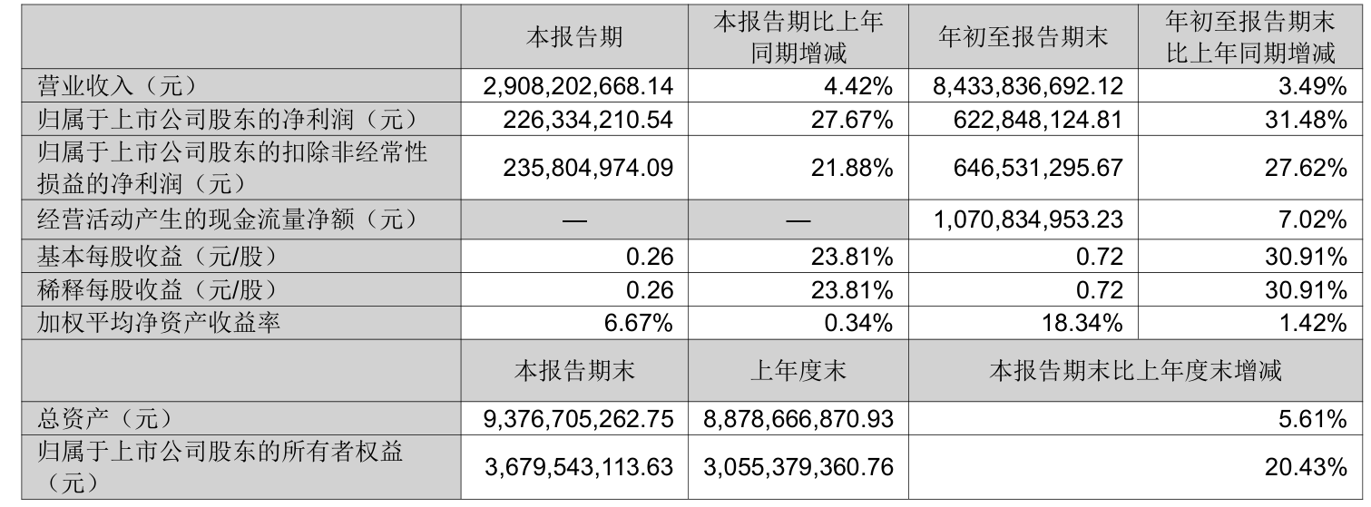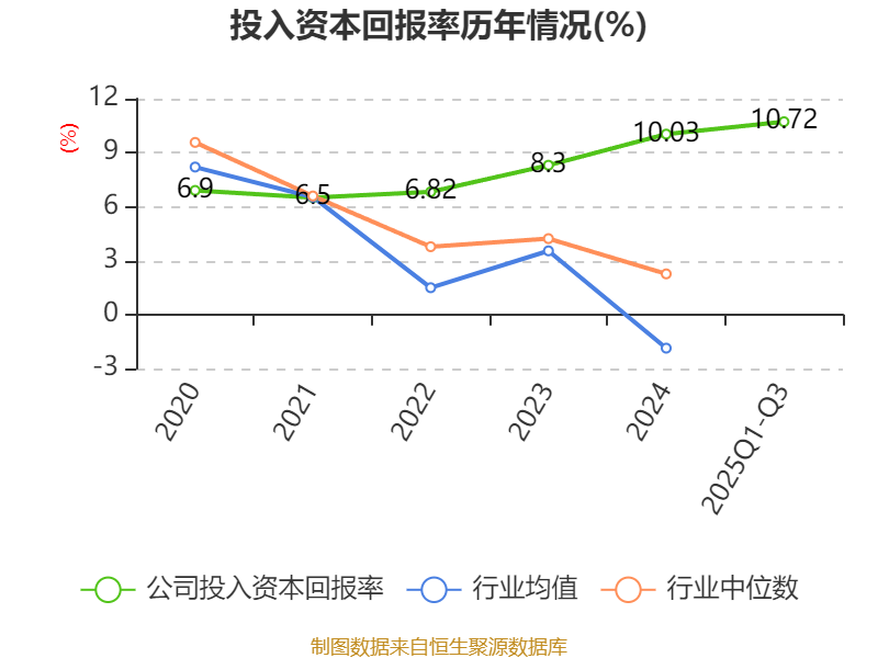 盈利能力方面, 2025年前三季度公司加权平均净资产收益率为18.34%,同比上升1.42个百分点。公司2025年前三季度投入资本回报率为10.72%,较上年同期上升2.21个百分点。