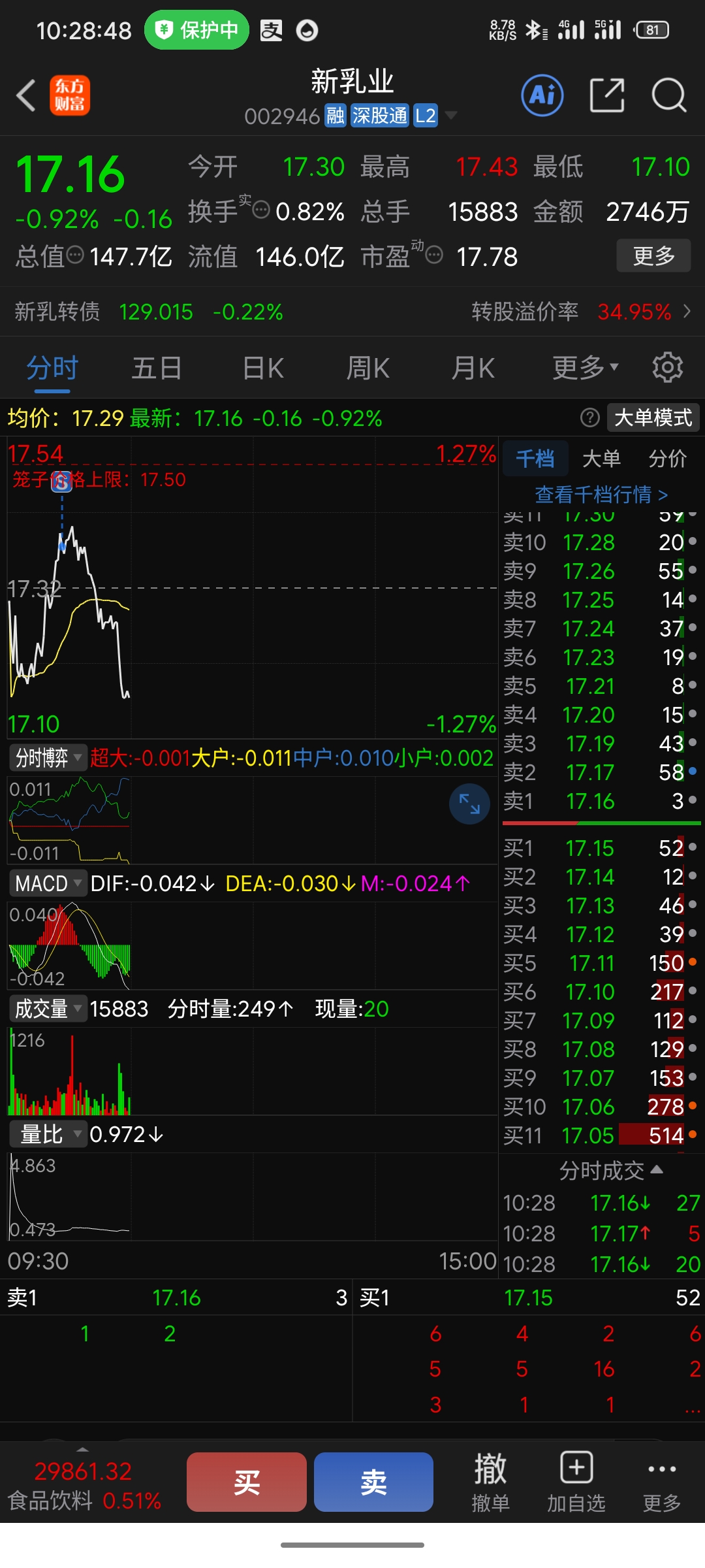 $新乳业(SZ002946)$ 板块大涨,你也是磨磨唧唧不跟涨,一看就不是好鸟,果断撤离