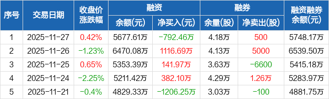 新乳业:融资净偿还792.46万元,融资余额5677.61万元(11-27)