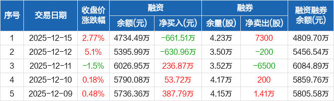 新乳业:融资净偿还661.51万元,融资余额4734.49万元(12-15)
