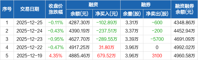 新乳业:连续3日融资净偿还累计629.95万元(12-25)