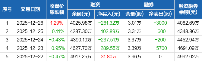 新乳业:连续4日融资净偿还累计891.27万元(12-26)