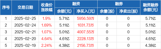 恒铭达:融资余额5.71亿元,创历史新高(02-25)