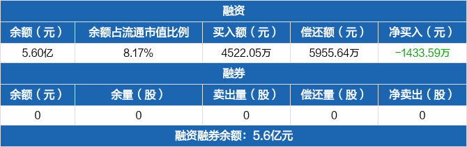 恒铭达:融资净偿还1433.59万元,融资余额5.6亿元(02-28)