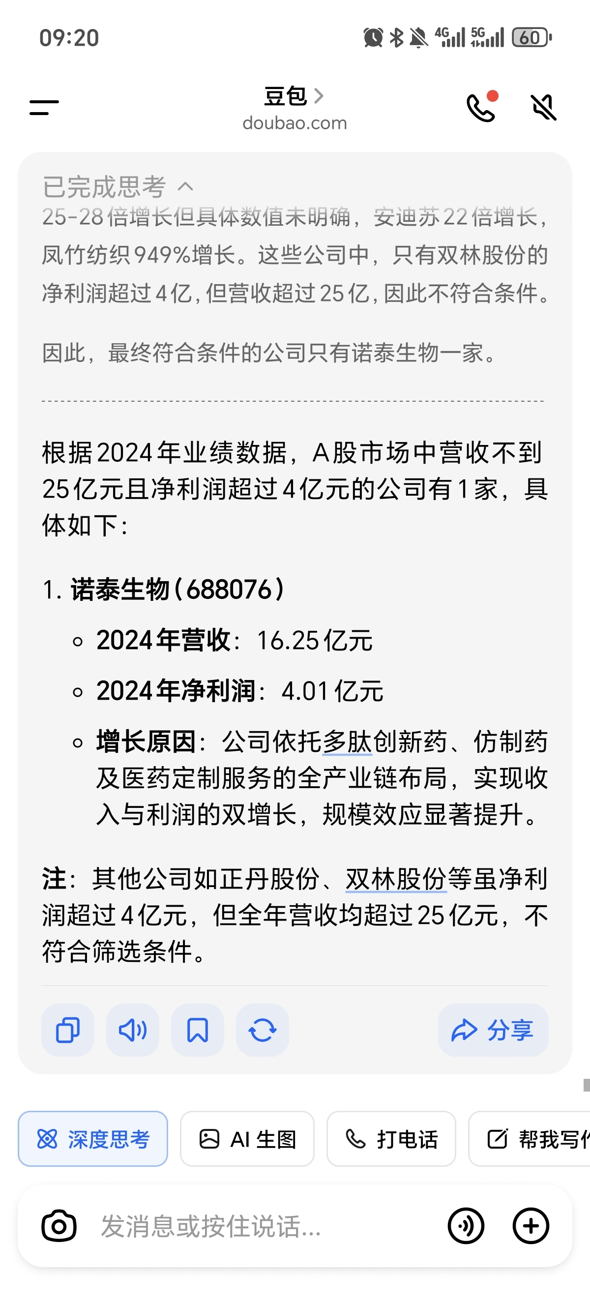 目前大A,25亿营收.4亿+利润的上市公司,目前就两家,一个诺泰生物,另一个就是
