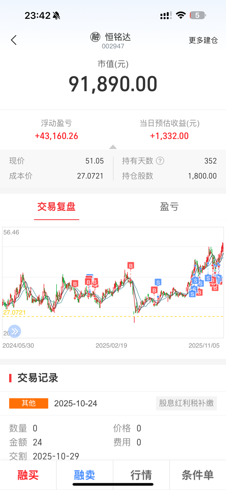 $恒铭达(SZ002947)$ 一年的时间把成本做到关税战了,坚定持有必有厚报