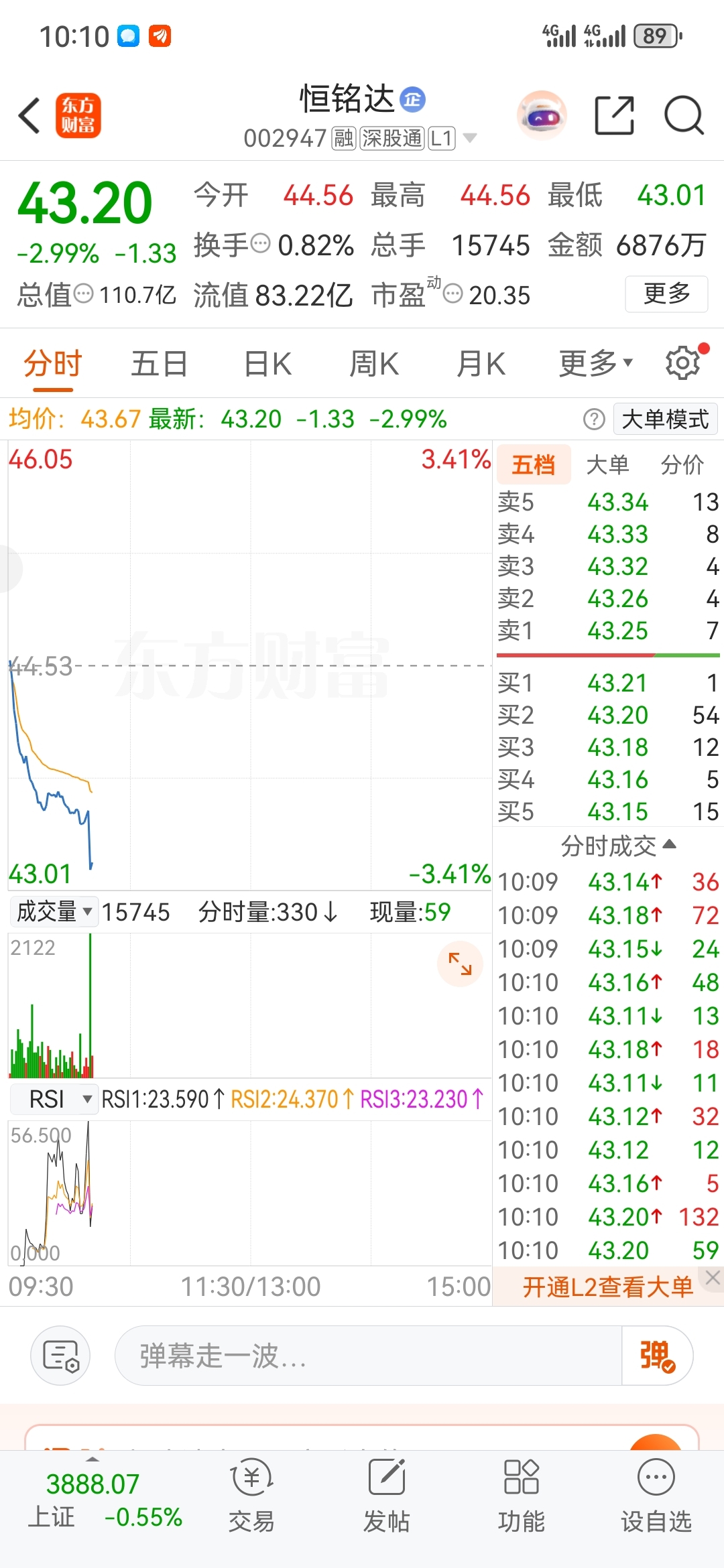 $恒铭达(SZ002947)$ 我估计 这根阴线,应该是家人们东财大量卖出