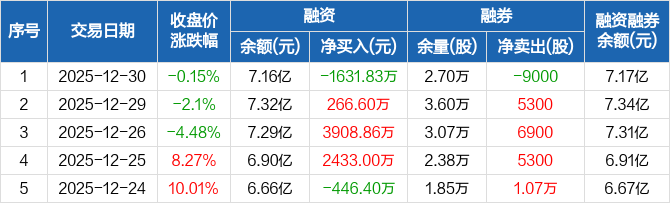 恒铭达:融资净偿还1631.83万元,融资余额7.16亿元(12-30)