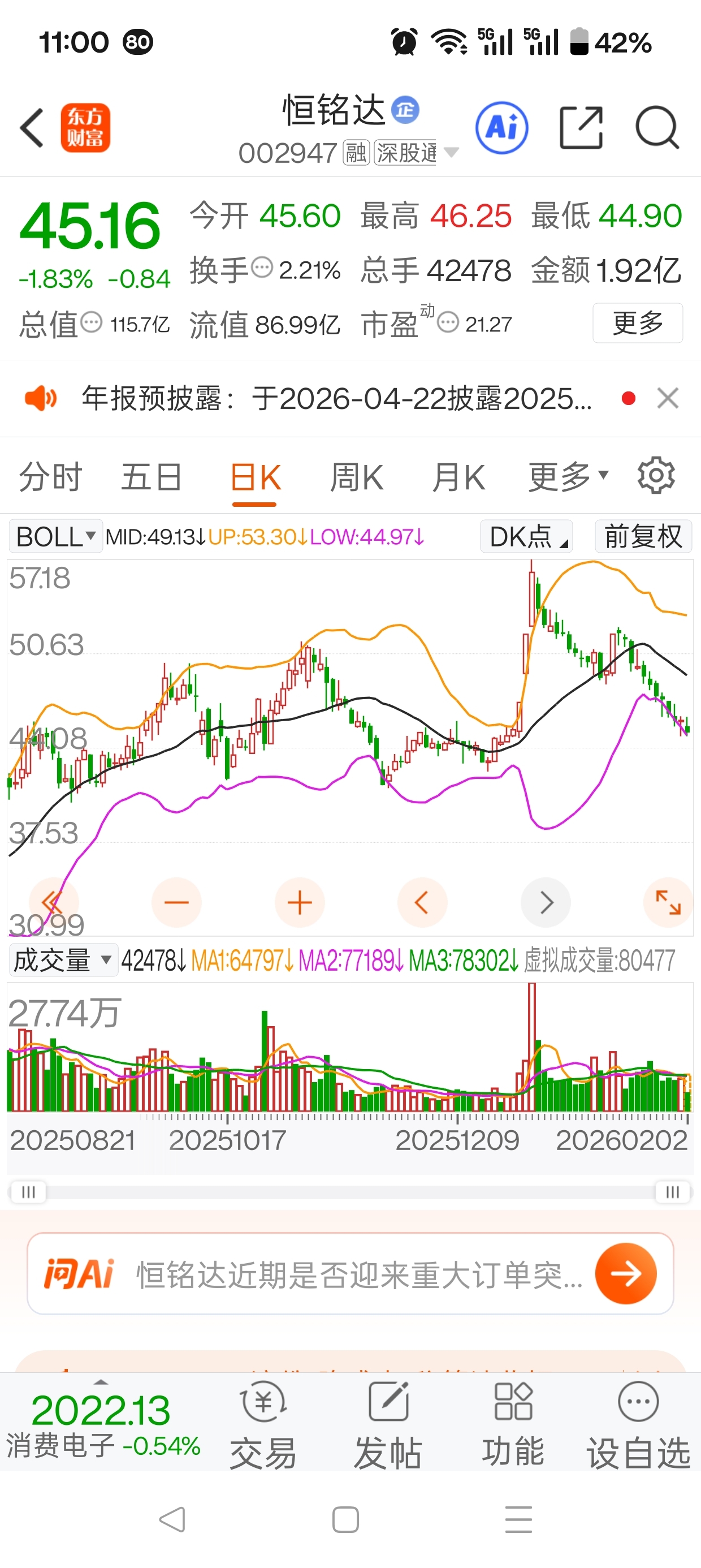 $恒铭达(SZ002947)$ 有大行情,这股!这只股票怎么了?排着队往下走,走的这么整齐?怪哉!!需要时间。