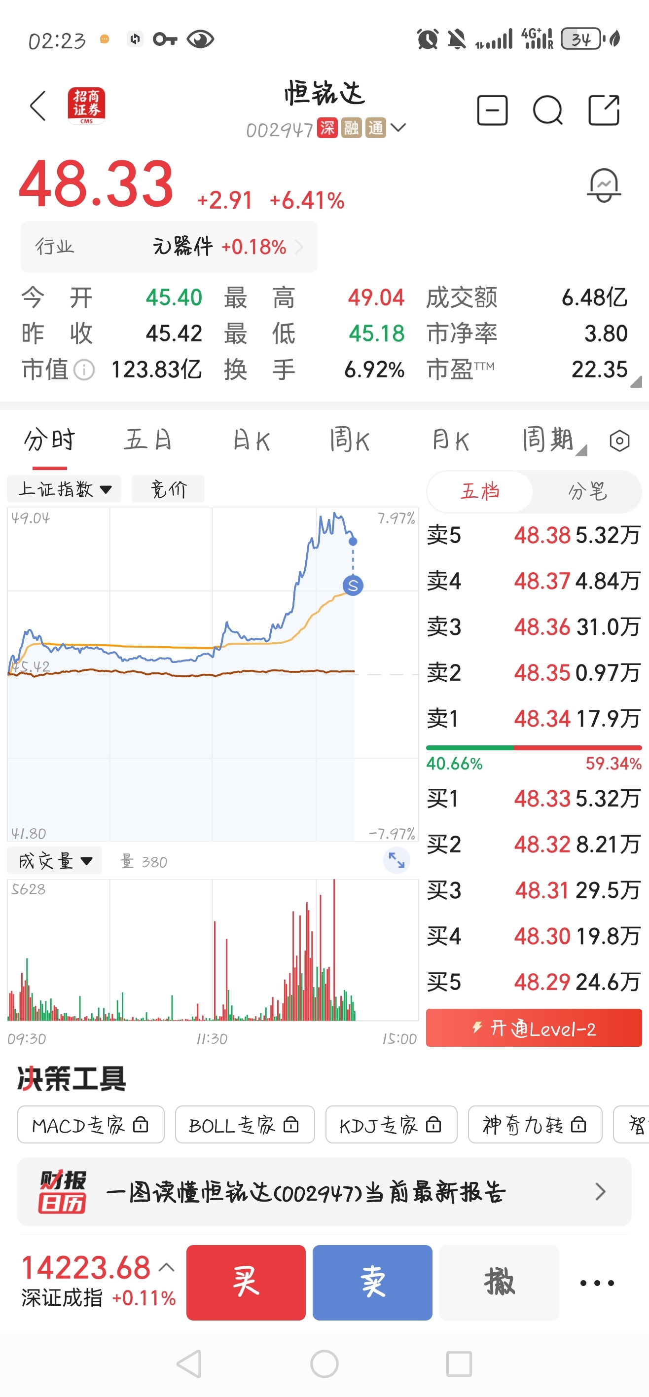 $恒铭达(SZ002947)$ 44.86本,涨不停,48.38先出一半#炒股日记#