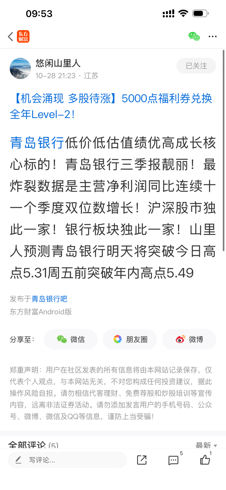 温馨提示: 1.根据《证券法》规定,禁止编造、传播虚假信息或者误导性信息,扰乱证券市场;2.用户在本社区发表的所有资料、言论等仅代表个人观点,与本网站立场无关,不对您构成任何投资建议。用户应基于自己的独立判断,自行决定证券投资并承担相应风险。《东方财富社区管理规定》