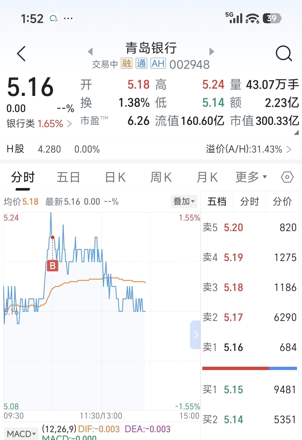 $青岛银行(SZ002948)$ 我今年第一次买银行, 我早上清仓了所有票,然后想着避险买只银行吧,我挑来挑去,然后全仓。呵呵,我TM真服了自己。挑了个最烂的。