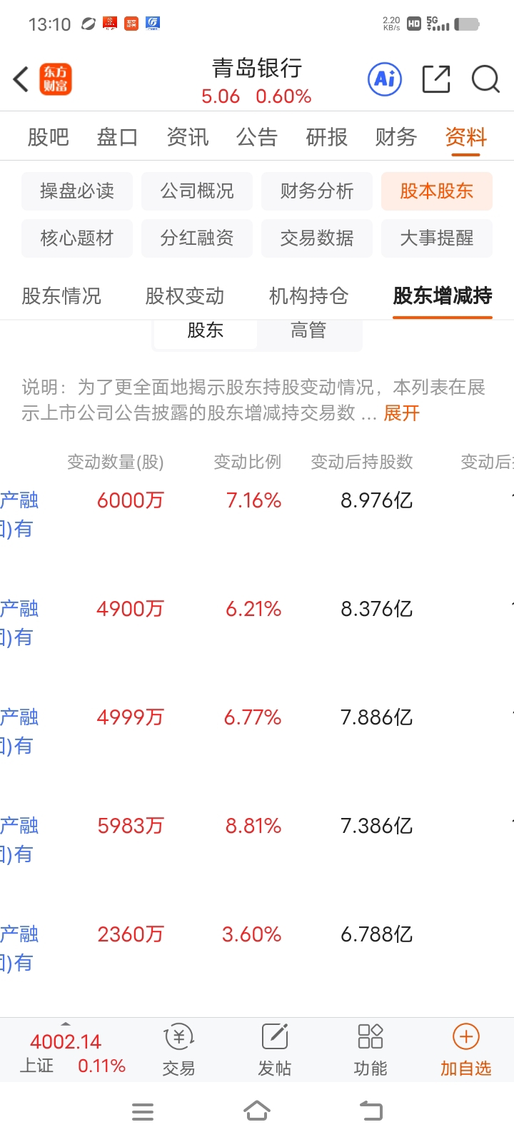 $青岛银行(SZ002948)$ 青岛银行前几天机构增持一亿多股,连和9月30日和10月份的共二亿多股,看下图