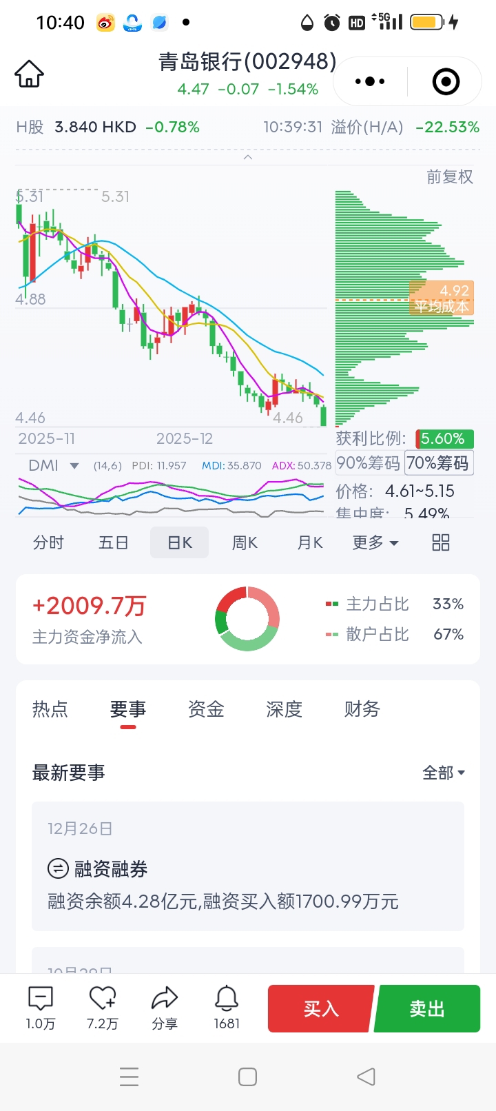 $青岛银行(SZ002948)$ 主力高手,边下跌收集筹码