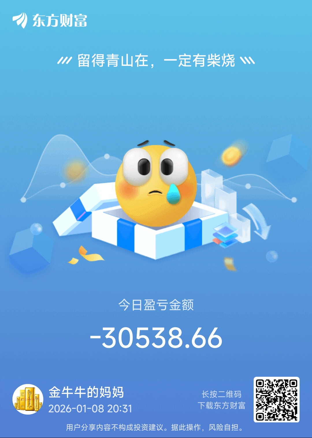 温馨提示: 1.根据《证券法》规定,禁止编造、传播虚假信息或者误导性信息,扰乱证券市场;2.用户在本社区发表的所有资料、言论等仅代表个人观点,与本网站立场无关,不对您构成任何投资建议。用户应基于自己的独立判断,自行决定证券投资并承担相应风险。《东方财富社区管理规定》