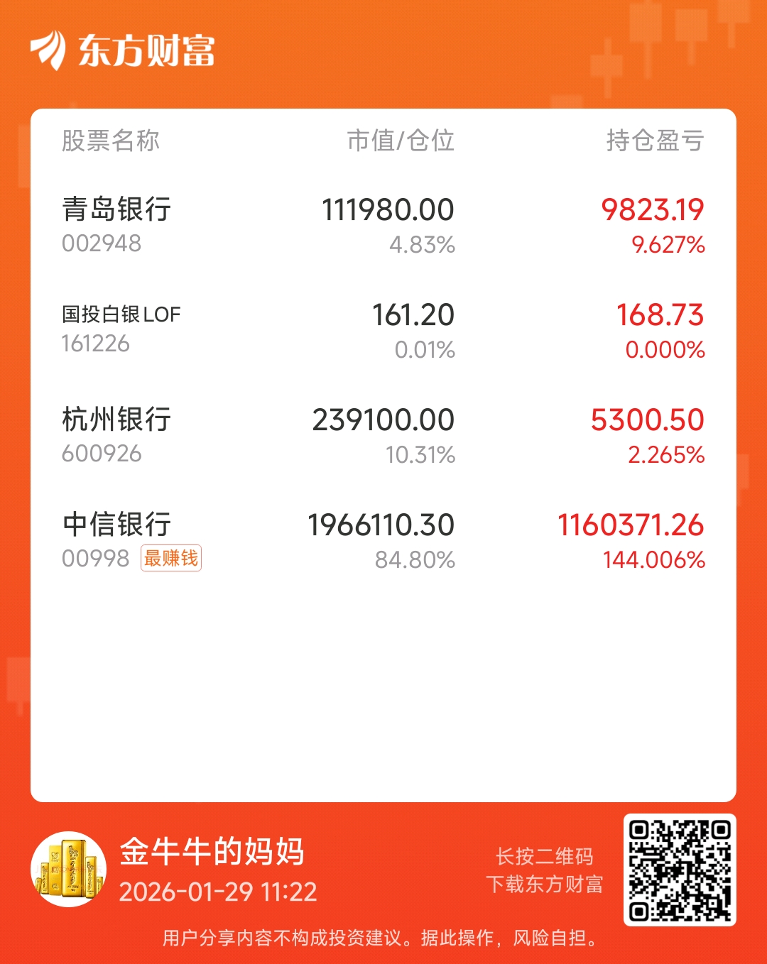 $中信银行(SH601998)$ $杭州银行(SH600926)$ $青岛银行(SZ002948)$ #炒股日记# #实盘记录# #投资随笔#