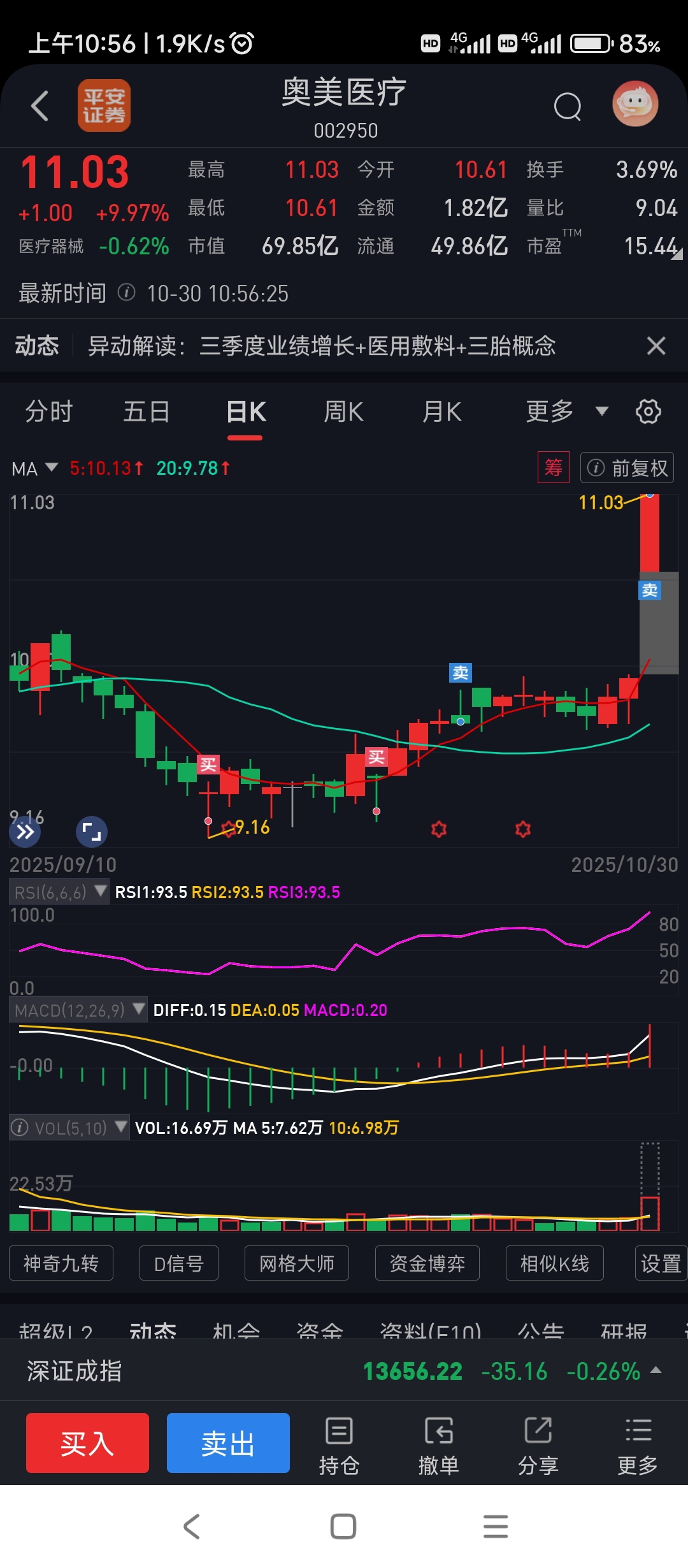 $奥美医疗(SZ002950)$  过山车坐多了,也就不想再坐了,到嘴的肉,不吃,又得还回去,这波一个月左右,盈利18个点,获利7865元,落袋了,格局留给你们。