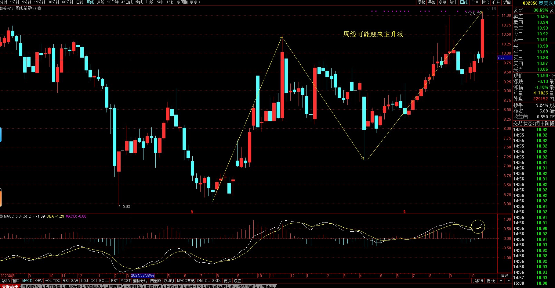奥美医疗周四的涨停板强势突破前期大平台,周线也是突破模式了,周线极有可能在这里开始主升!下周初可以择机买入:短线中线两不误!