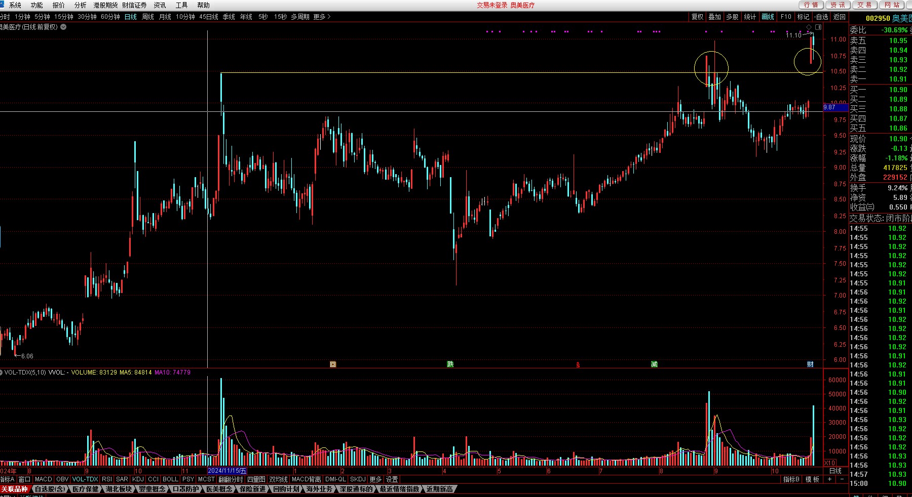 奥美医疗周四的涨停板强势突破前期大平台,周线也是突破模式了,周线极有可能在这里开