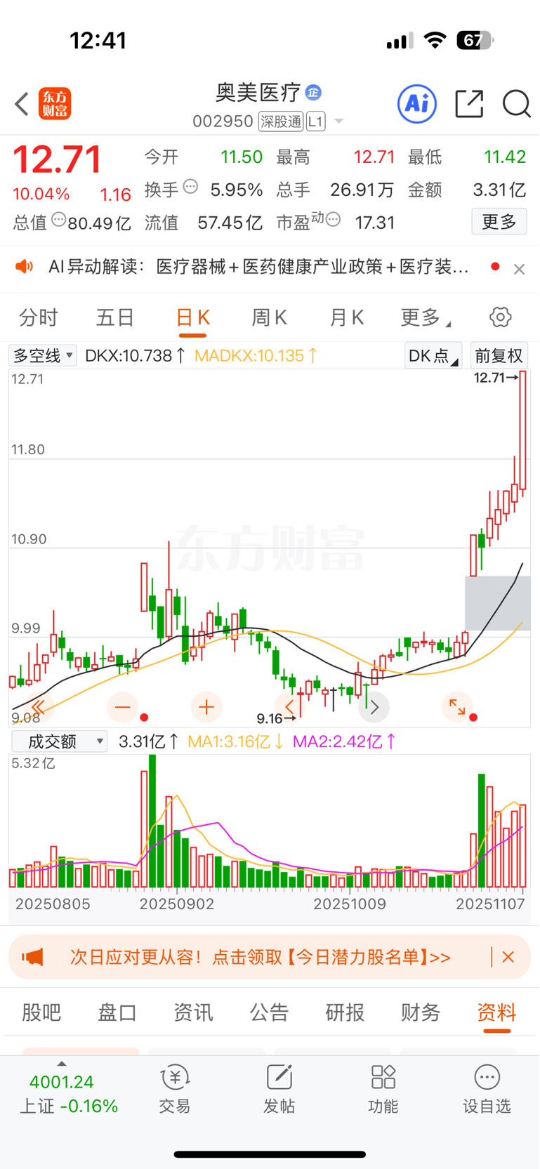 $奥美医疗(SZ002950)$ $奥美医疗(SZ002950)$ 大股东都敢抄家,散户有什么理由不买?此股很有可能成为下一个振德医疗,今天的涨停很有可能是振德医疗的资金转移,不信你对比一下两个股票的K线图