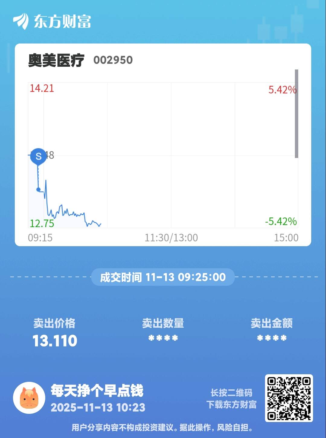 $奥美医疗(SZ002950)$ 挂跌停跑了,别想套我,最终还是从老庄兜里掏出了早点钱,挣这种抠门老庄的钱太累了,找个轻松点的去了