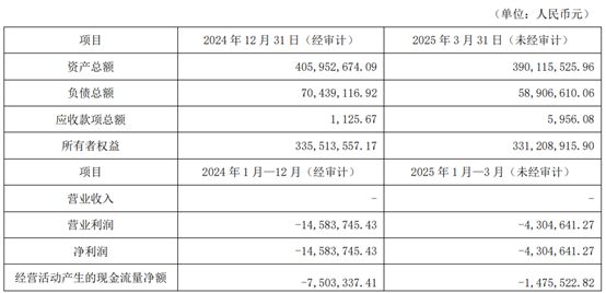 业绩方面,湖南金时2024年和今年一季度均无营收,净利润分别为-1458.37万元和-430.46万元,经营活动产生的现金流量净额分别为-750.33万元和-147.55万元。