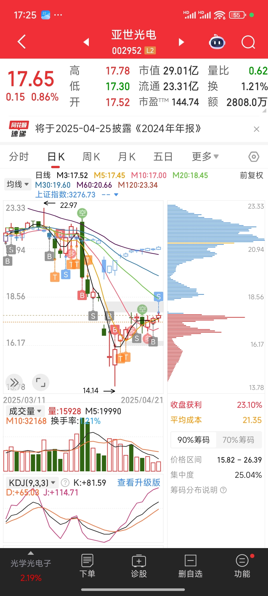 $亚世光电(SZ002952)$ 溜了,4月份业绩不好不能碰