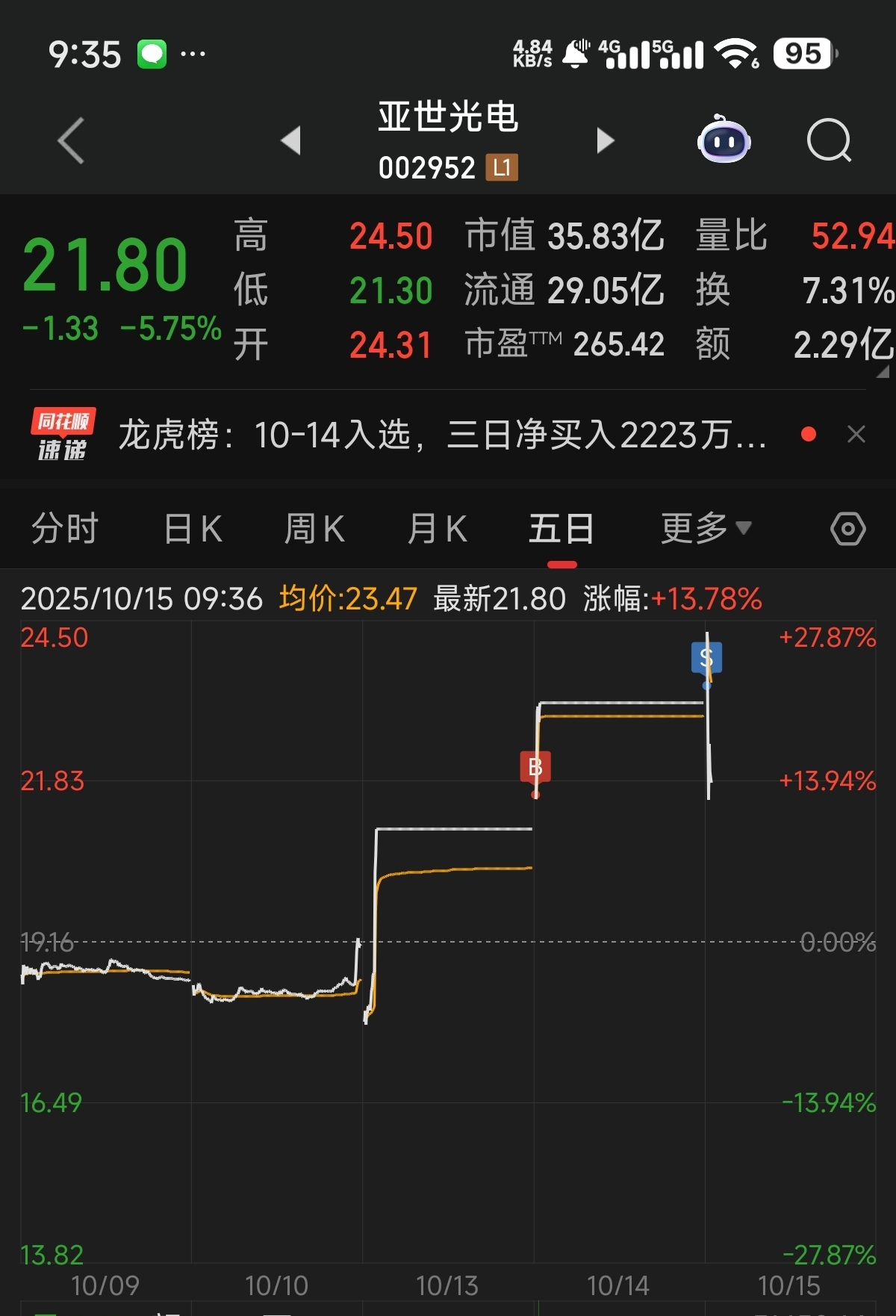$亚世光电(SZ002952)$ 一点不能格局,落袋了,祝留下的兄弟们发财!