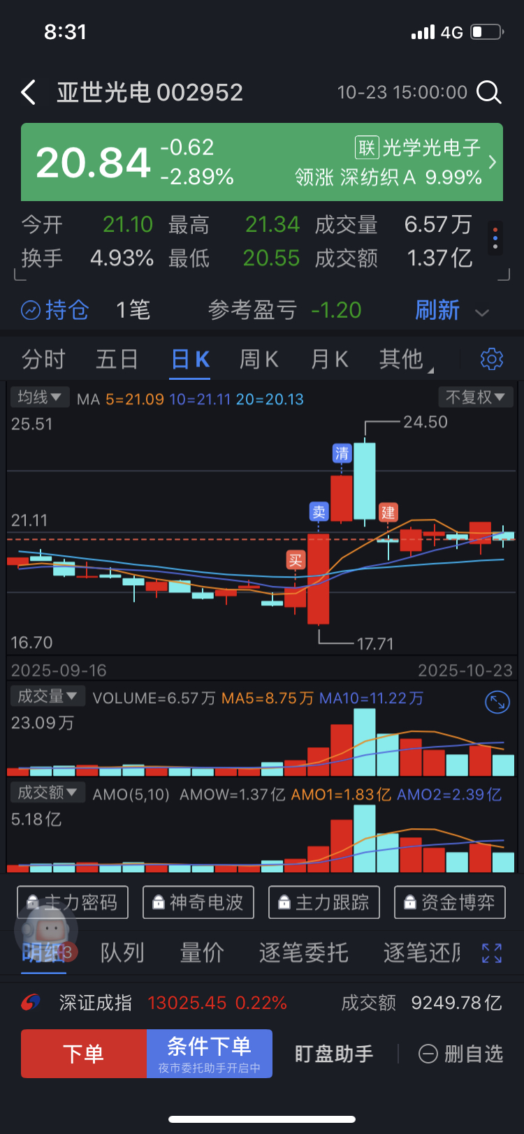 $亚世光电(SZ002952)$ 今天如果高开高走就清仓,等回调两天又买回来