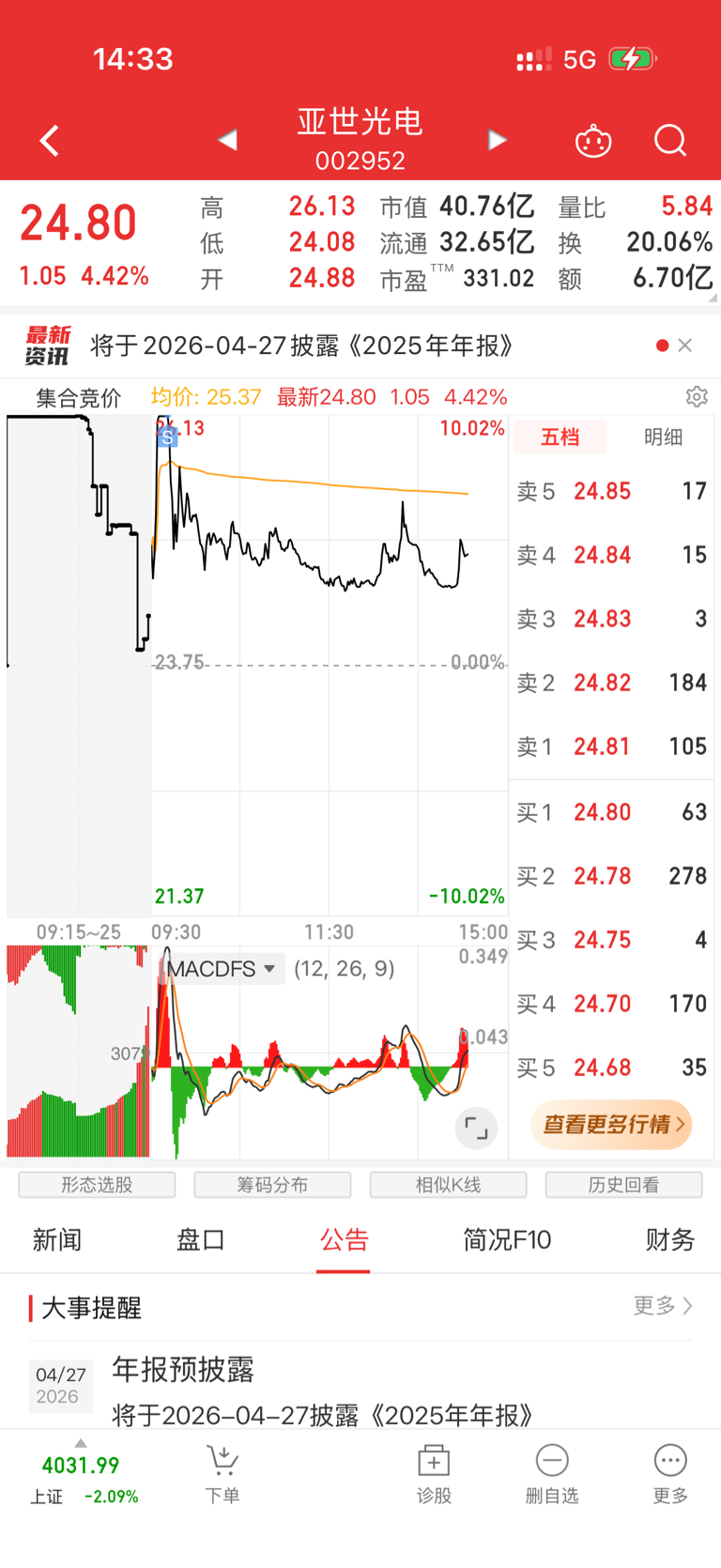 $亚世光电(SZ002952)$ 这算什么?逃顶还是卖飞