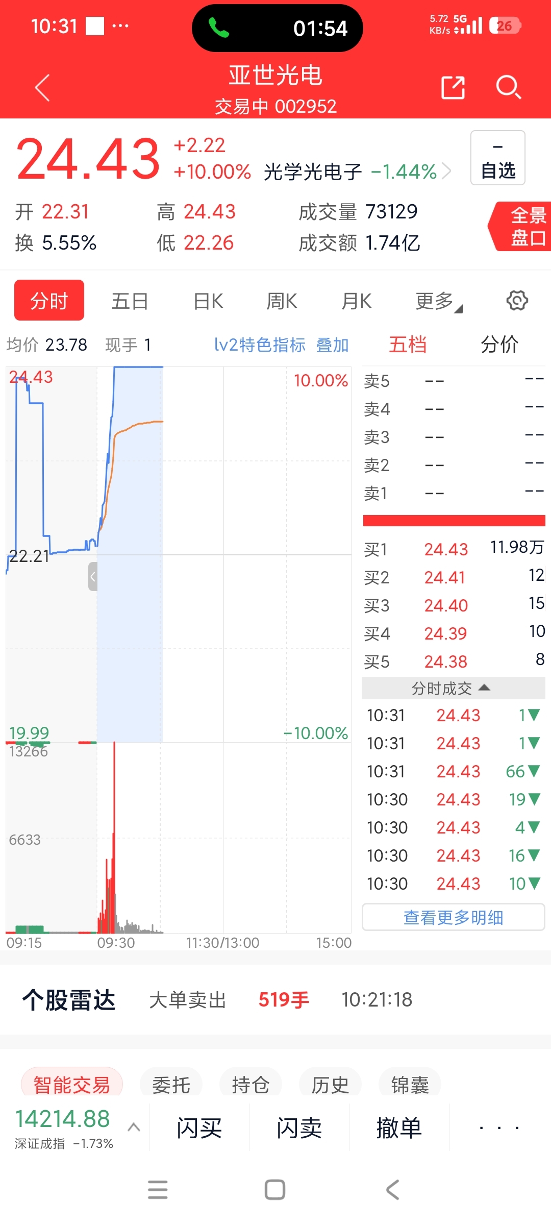 $亚世光电(SZ002952)$ 光电封板里面昨天他启动最慢,然后国星光电,聚灿光电,聚飞光电先起来带动他。在看封板金额一路减少,从13万手到1.4万手,板上出货了2个多亿,今天换手10%这股没有一字封,马上要洗盘了。后面看不懂,短期要大调整了