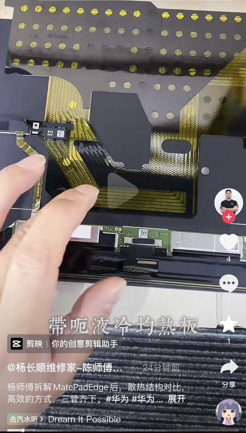 $日丰股份(SZ002953)$ Y师傅,HW matepad拆解,微泵液冷散热,技术突破,牛啊,是日丰供货嘛