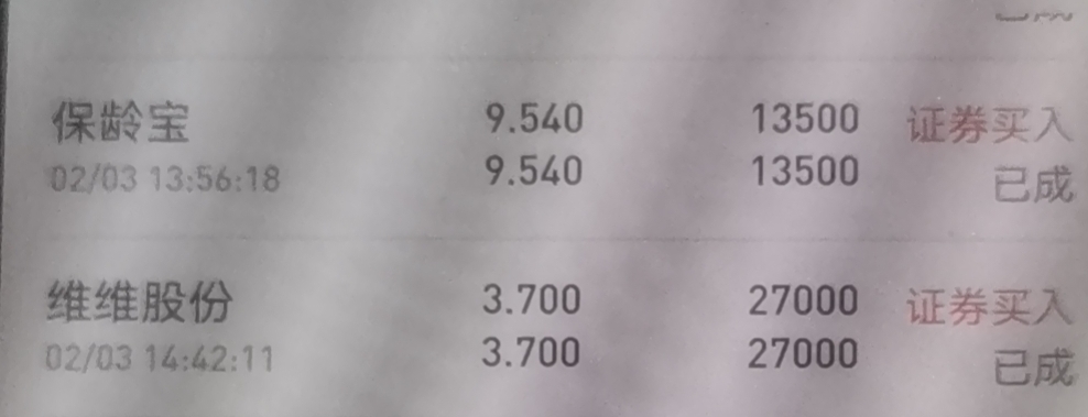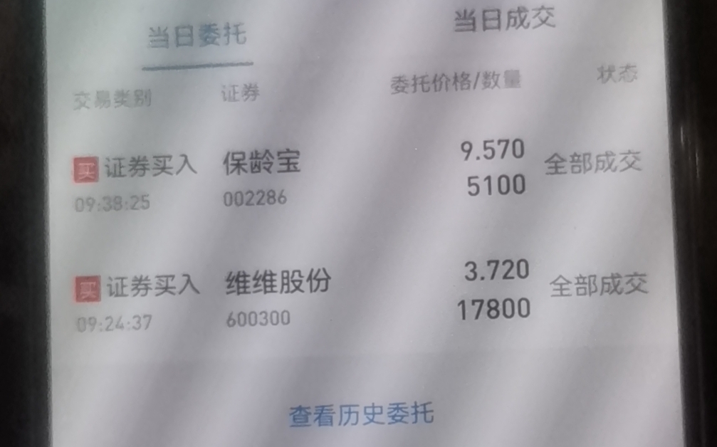 $日丰股份(SZ002953)$ 前日9.36买入兆驰股份,昨日9.77卖出兆驰股份。昨日3.70买入维维股份,9.54买入宝龄宝,20.89买入威孚高科。今日早上竞价3.71买入维维股份,9.57买入宝龄宝。 其它维持不变。