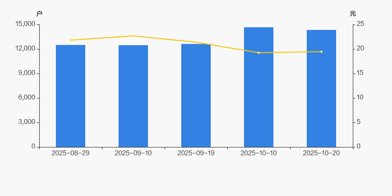 2025年8月29日至今,公司股东户数显著增长,区间涨幅为14.72%。2025年8月29日至2025年10月20日区间股价下降10.82%。