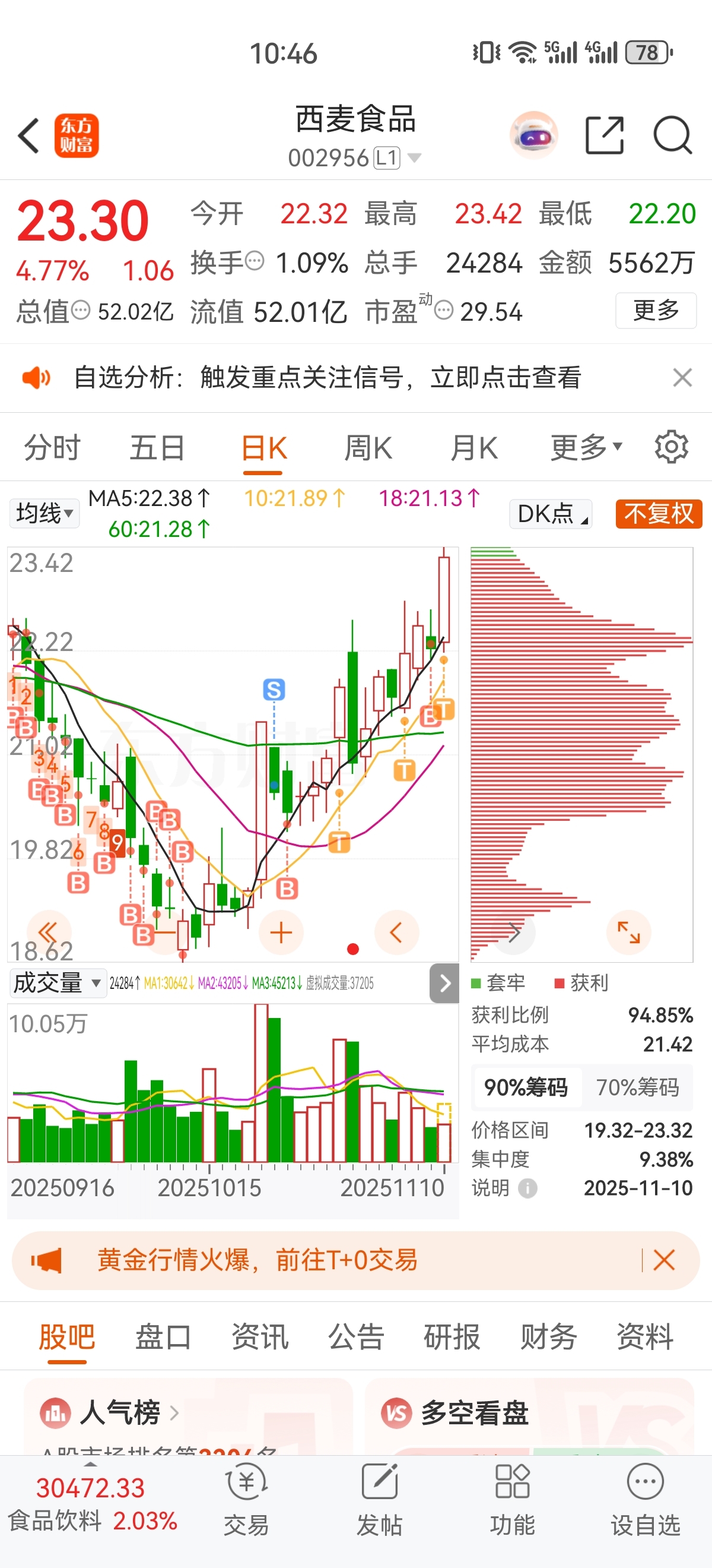 $西麦食品(SZ002956)$ 终于V回来了,做T往上慢慢出