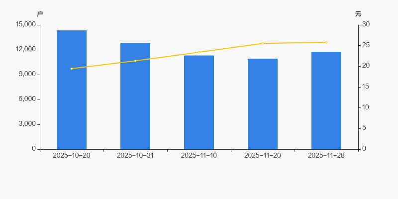 2025年10月20日至今,公司股东户数显著下降,区间跌幅为17.95%。2025年10月20日至2025年11月28日区间股价上涨32.70%。
