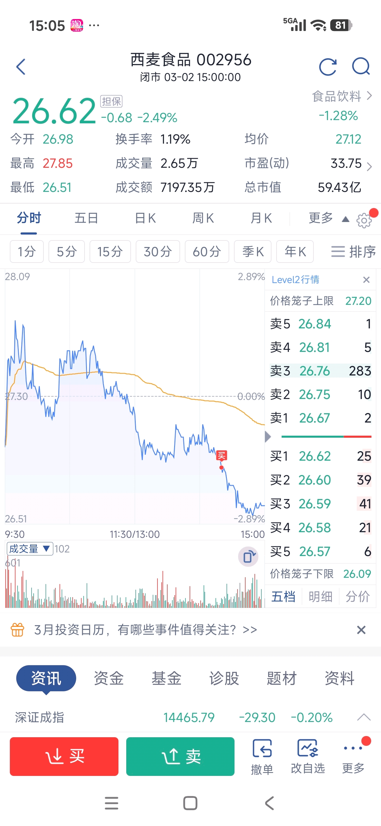 $西麦食品(SZ002956)$ 哟嚯,抄底抄到半山腰上