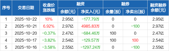科瑞技术:融资净偿还177.79万元,融资余额2.95亿元(10-22)