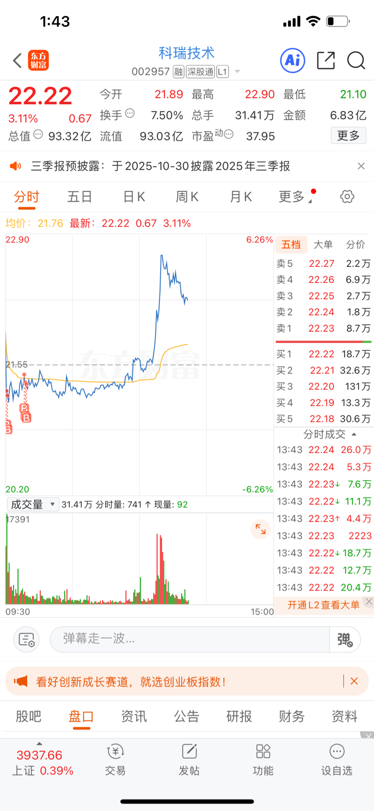 $科瑞技术(SZ002957)$ 盘中富贵???