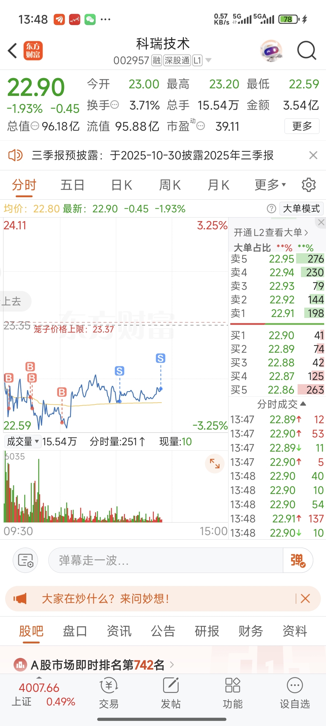 $科瑞技术(SZ002957)$ 外面涨疯了,打死不放量,t出来一部分看情况吧