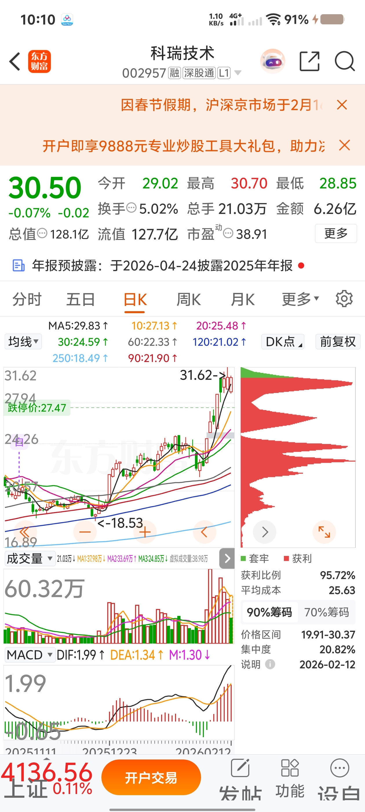 $科瑞技术(SZ002957)$ 上方亳无压力,有什么理由跌,庄就是为了制造恐慌捡筹码