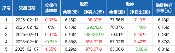 青农商行:融资净买入198.89万元,融资余额6.15亿元(02-13)