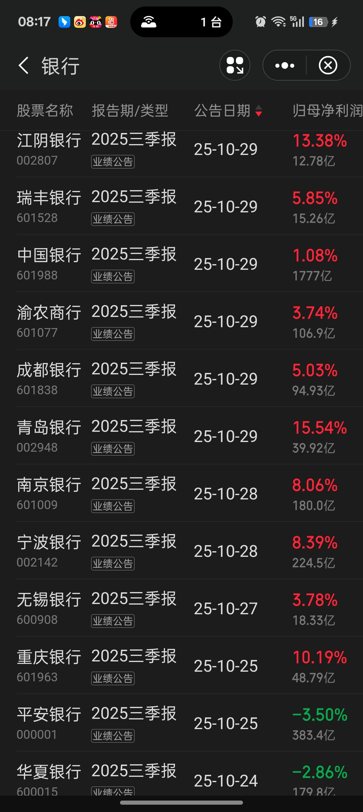 $青农商行(SZ002958)$ $民生银行(SH600016)$ 昨晚又有6家银行发布了三季报,截至目前,42家银行有12家发布了三季度报,与中报反转,总体超预期,且息差趋稳。