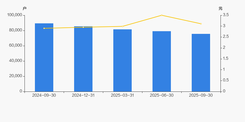 2024年9月30日至今,公司股东户数显著下降,区间跌幅为15.45%。2024年9月30日至2025年9月30日区间股价上涨7.33%。